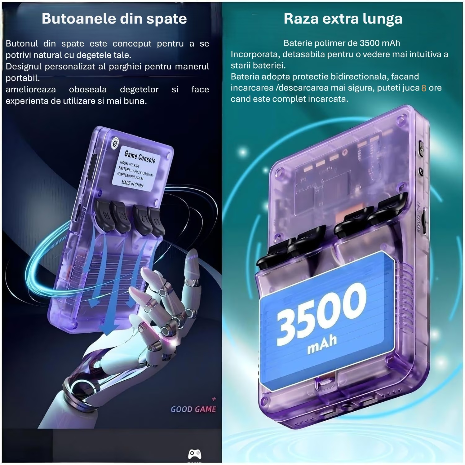 Transforma orice moment intr-o experienta de gaming autentica! Aceasta consola pentru jocuri portabila este ideala pentru copii si adulti, cu un design modern, joystick-uri 3D duble si un ecran IPS clar de 3.5 inch.