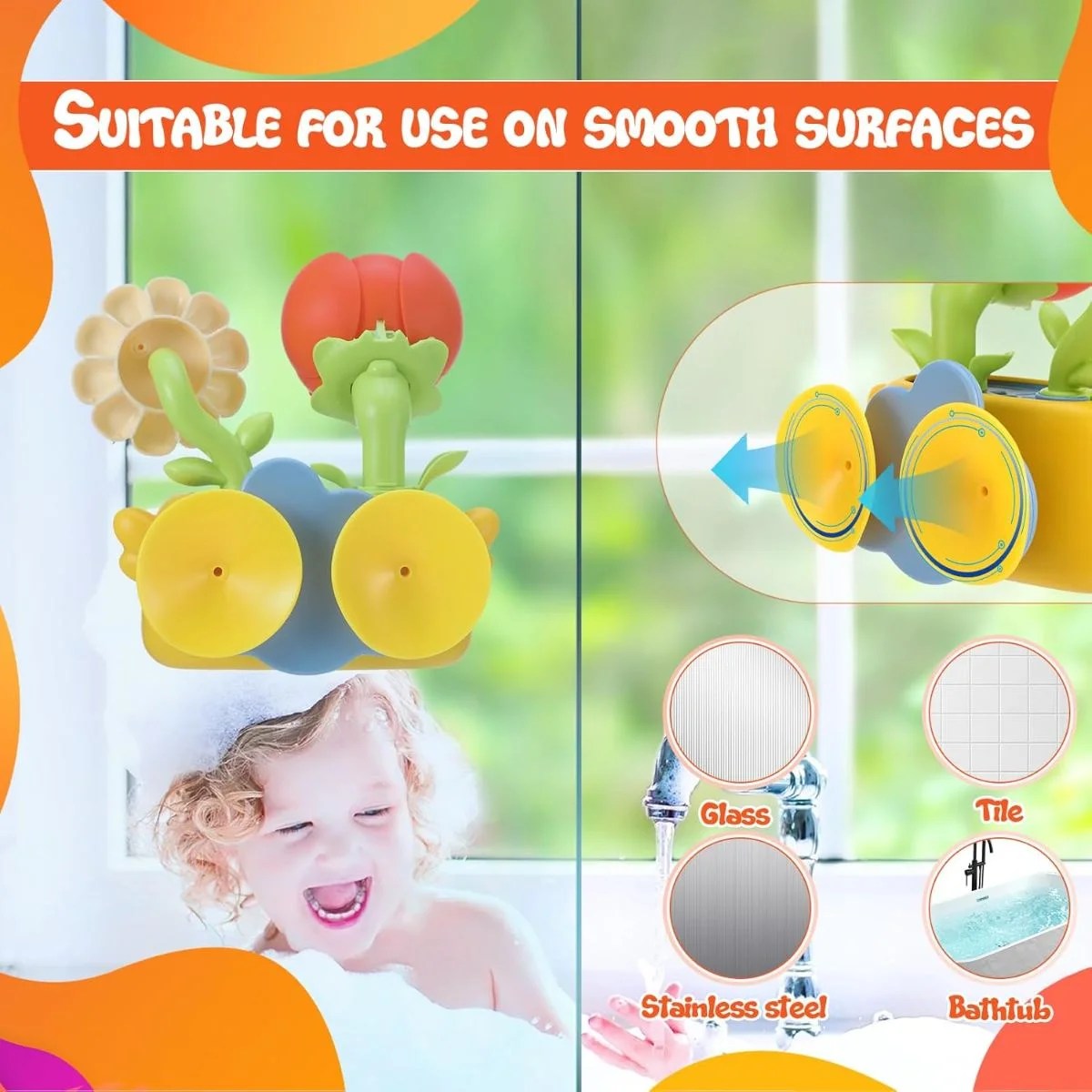 Cum functioneaza magia? Este simplu si fascinant! Cu ajutorul linguritei, micutul tau va turna apa peste flori. Priviti cum albinuta se invarte jucaus, iar margareta imprastie stropi veseli. Apa colectata in baza va incepe apoi sa curga in mici jeturi din partea de jos, creand un efect de dus in miniatura. Aceasta succesiune de evenimente ii va mentine pe copii angajati si curiosi, transformand fiecare baita intr-un moment asteptat cu nerabdare.