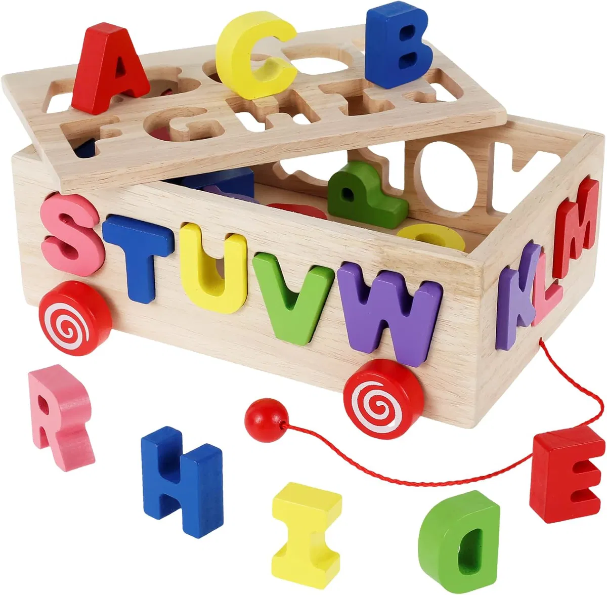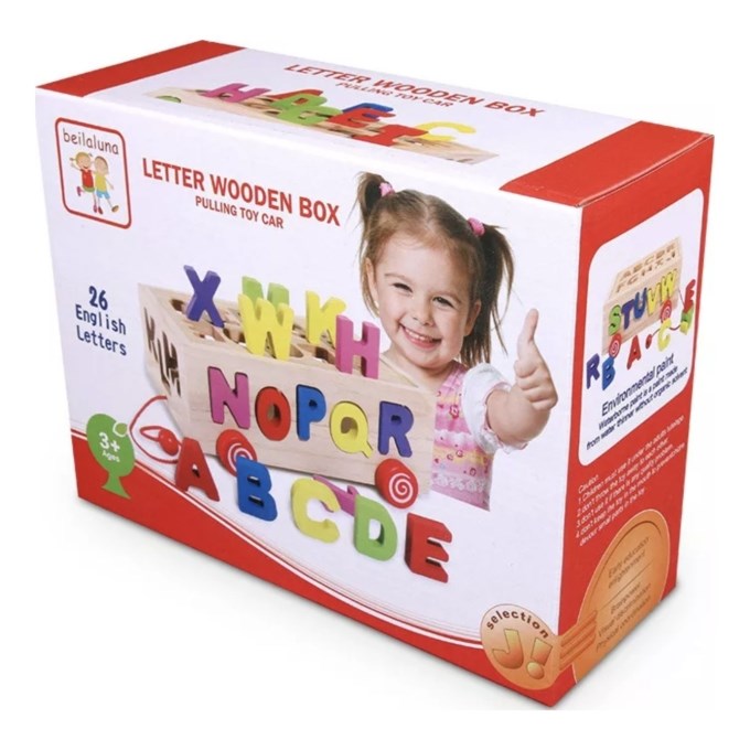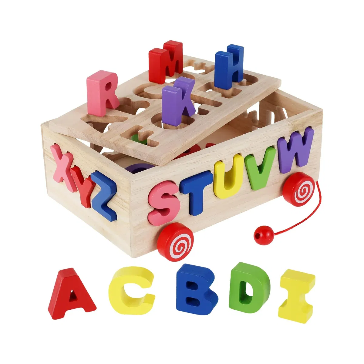 Invatam literele cu aceasta Jucarie Camion de tras din lemn cu litere Alfabet Letter Wooden Box