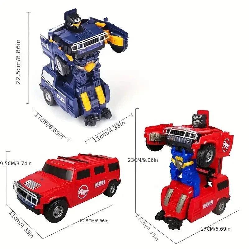 - Transformare automata: Masinuta se schimba rapid si fluid dintr-un vehicul de teren rosu intr-un robot impunator si invers, oferind o experienta unica si captivanta, activata automat sau printr-o apasare de buton.